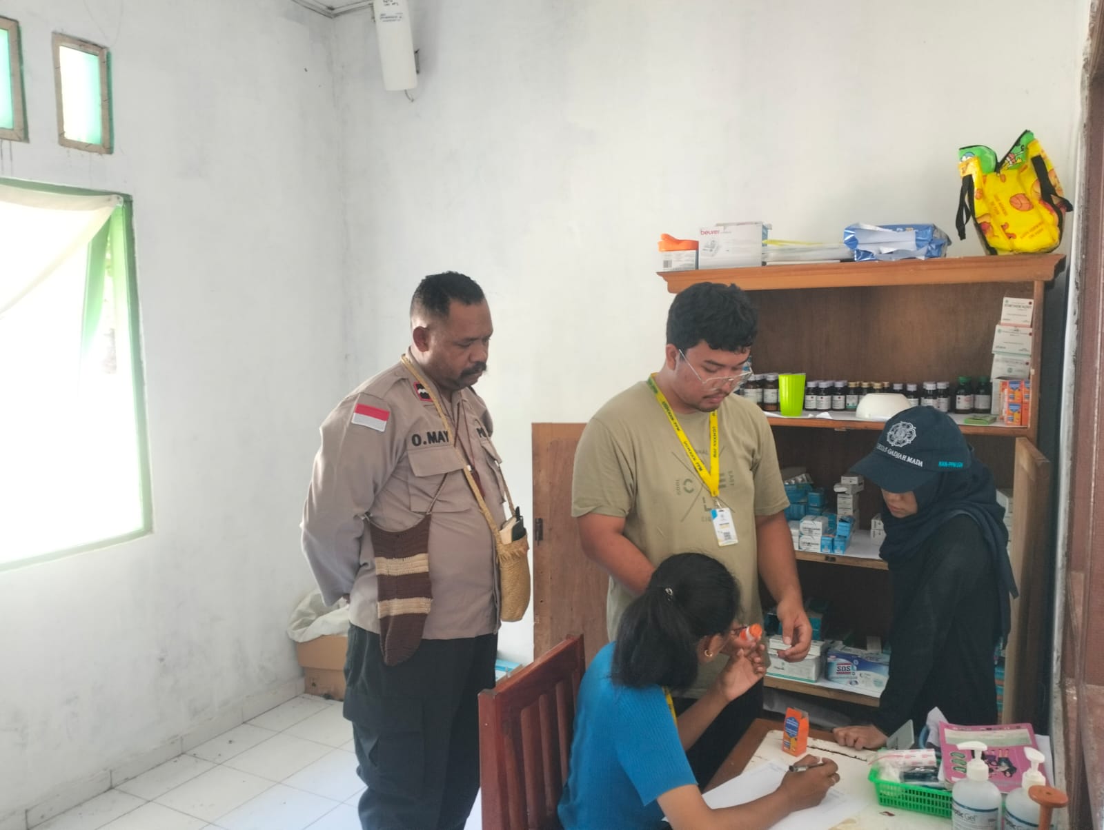 Sarmi – Ps. kapolsubsektor Pulau Liki Aipda Obed May melakukan giat monitoring kegiatan mahasiswa KKN-PPM UGM tahun 2024 Divisi Kesehatan yang bertempat di Pustu Kampung Pulau Liki, kabupaten Sarmi, Rabu (31/07/2024).