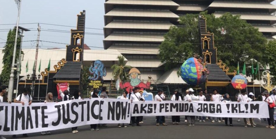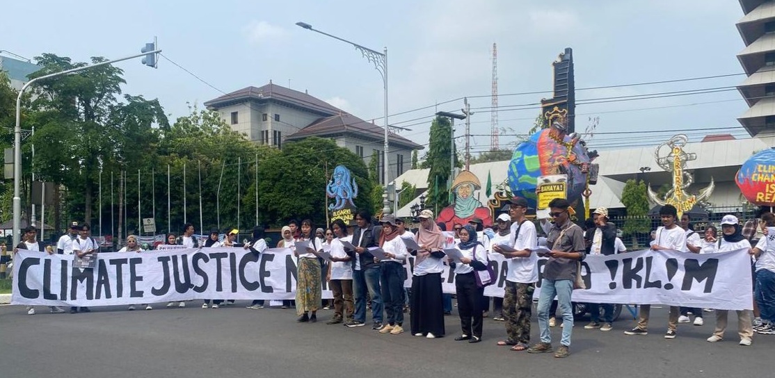 “Kami melihat bahwasanya Pemerintah Indonesia, para pengusaha, maupun elite-elite ini belum serius menangani krisis iklim,” ucap Bagas saat membacakan deklarasi.