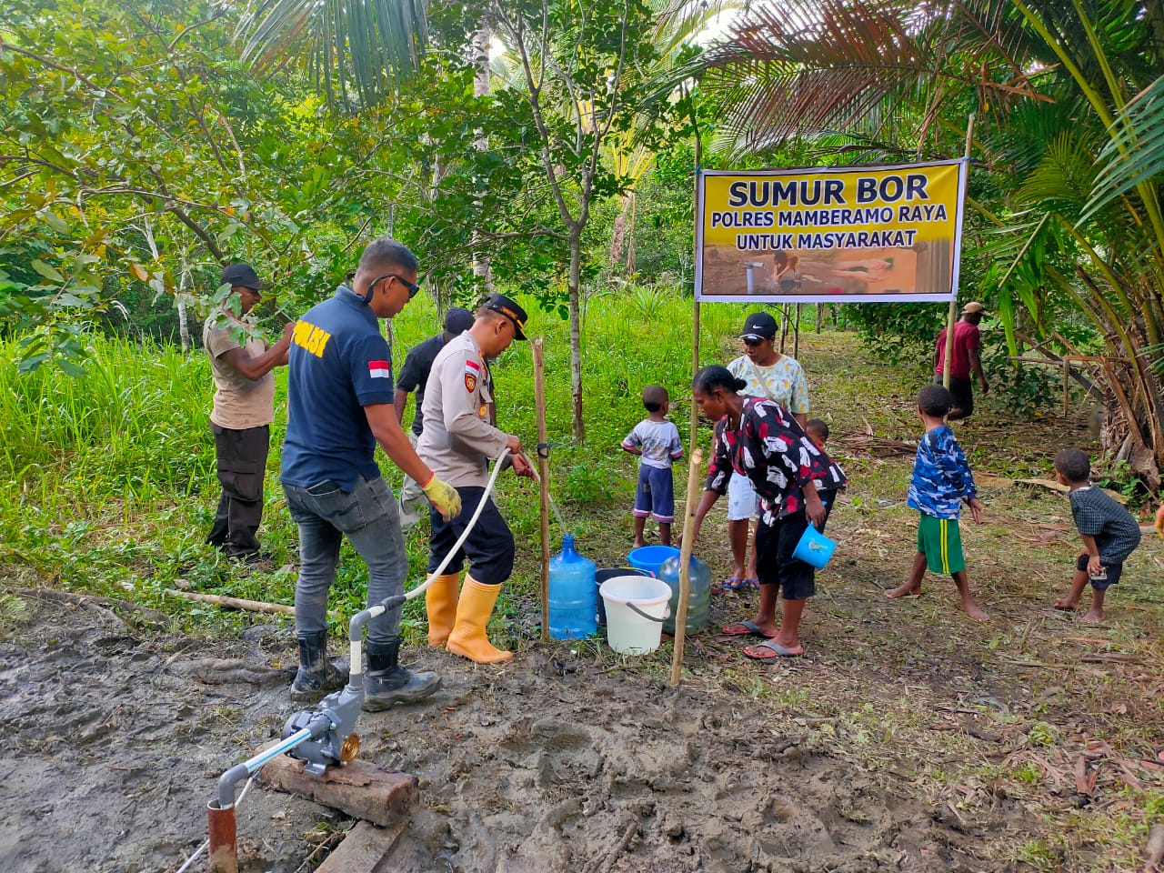 Rawan Alami Krisis Air Bersih, Polres Mamberamo Raya Buat Sumur Bor di Kampung Burmeso