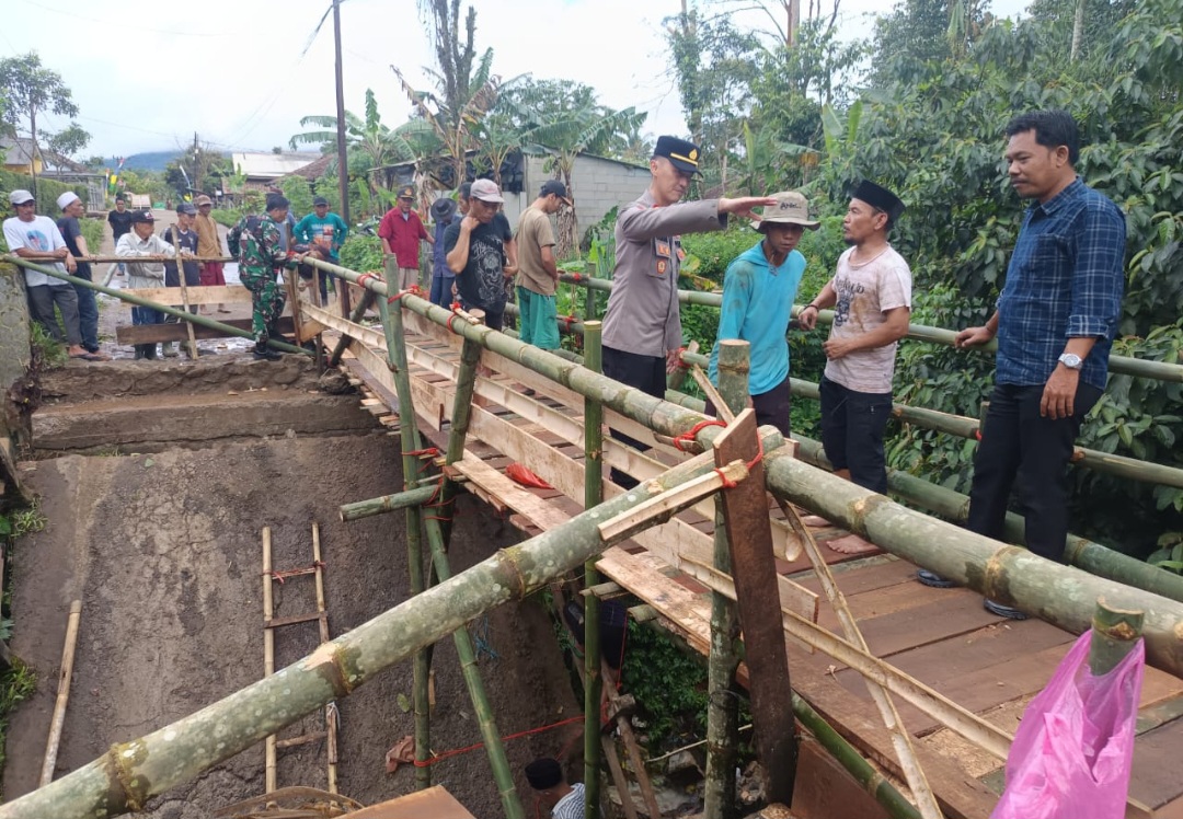 Respons Cepat Polsek Mandalawangi Tangani Ambruknya Jembatan Penghubung Warga