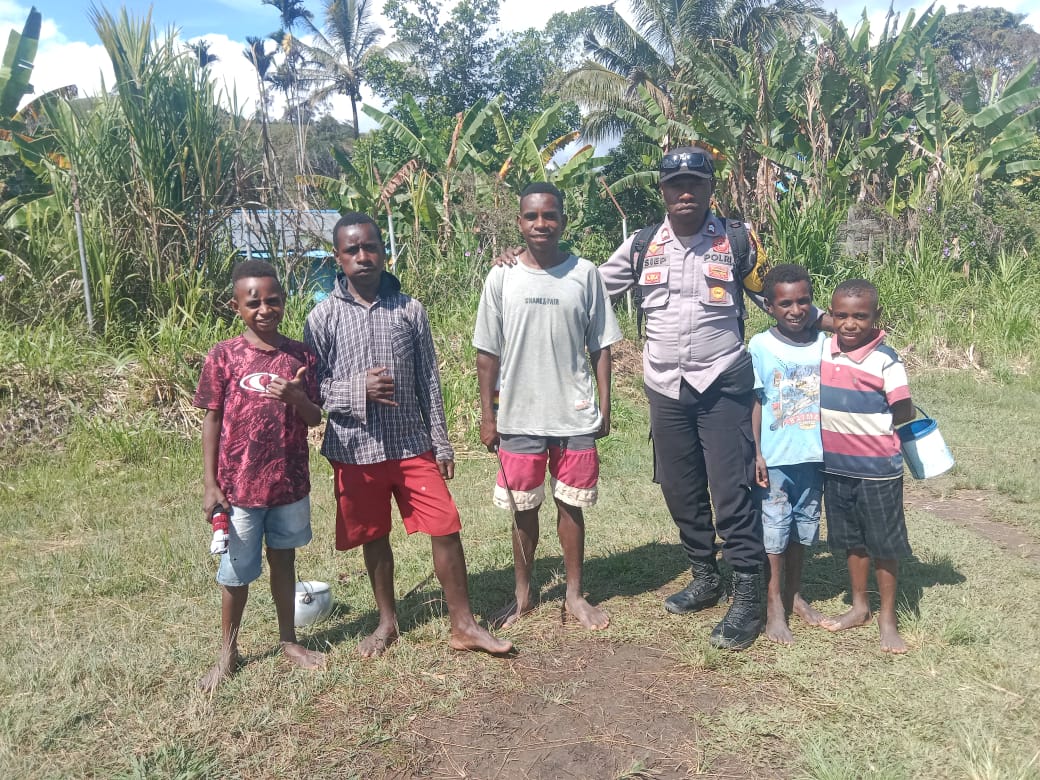 Desa Gwagi Distrik Kobakma Kab.Mamberamo Tengah,Bhabinkamtibmas Briptu Mikael.Siep Menyambangi anak-anak.