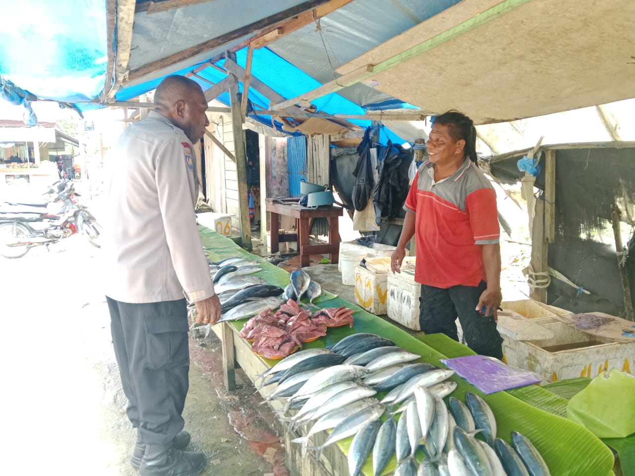 Sarmi – Kasat Binmas Polres Sarmi Iptu Yulianus Mapeni S.E. bersama anggotanya laksanakan Giat Sambang Tokoh masyarakat Kampung Martewar yang sedang beraktifitas di kampung Tafarewar Distrik Sarmi kota. Rabu (18/9/2024)
