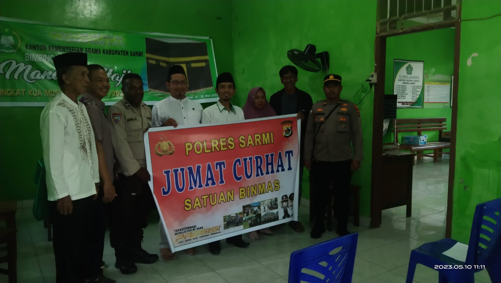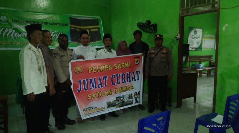 Sarmi, WIT – bertempat di Base camp kantor urusan agama kabupaten sarmi satuan binmas polres sarmi menggelar jumat curhat dengan menyambangi kantor urusan agama sarmi melaksanakan tatap muka dengan calaon jamaah haji siang tadi . Jumat ( 26/05/23).