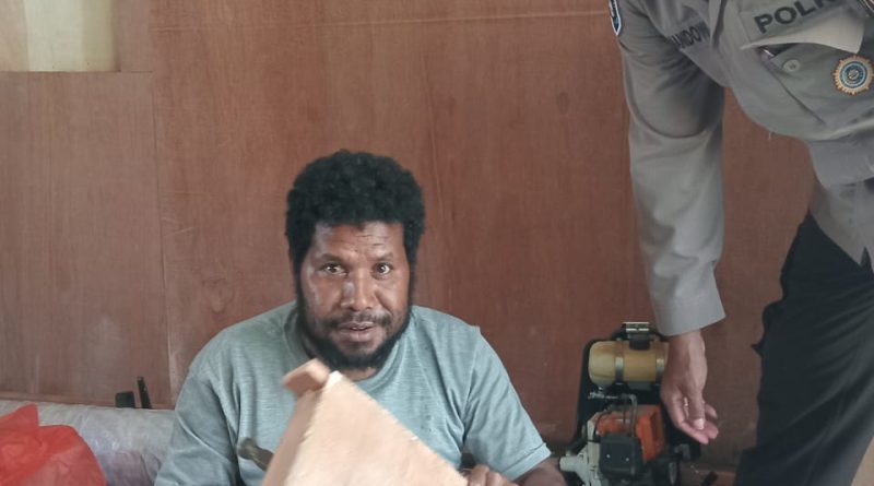Wamena-Kanit Bhabinkamtibmas Polres Jayawijaya Aipda Rio Mandouwen menyambangi salah satu warga binaannya bapak Sam Rumbino di Jalan Hom-Hom Wamena, Kamis (14/12) pagi.