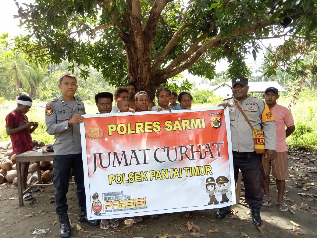 Sarmi, WIT – dalam mendukung program jumat curhat yang selalu di digelar oleh polres sarmi personil polsek pantai timur menyambangi warganya yang bertempat di kampung yamna guna mendengarkan keluhan warganya siang tadi . Jumat (27/01/23)
