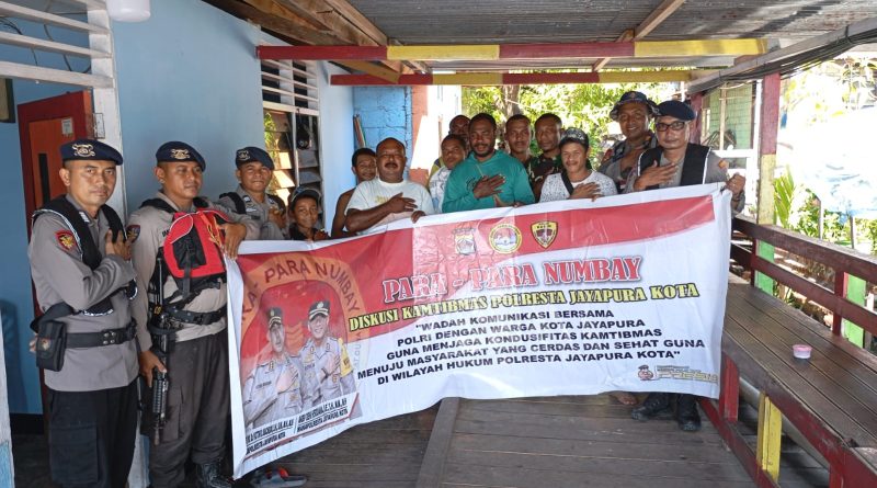 Papua – Satuan Polairud Polresta Jayapura Kota mengunjungi warga Komplek Abe Pantai RT 01/RW 06 dalam rangka Para-para Numbay untuk menghimbau warga setempat menjaga Kamtibmas dilingkungannya, (5/6).