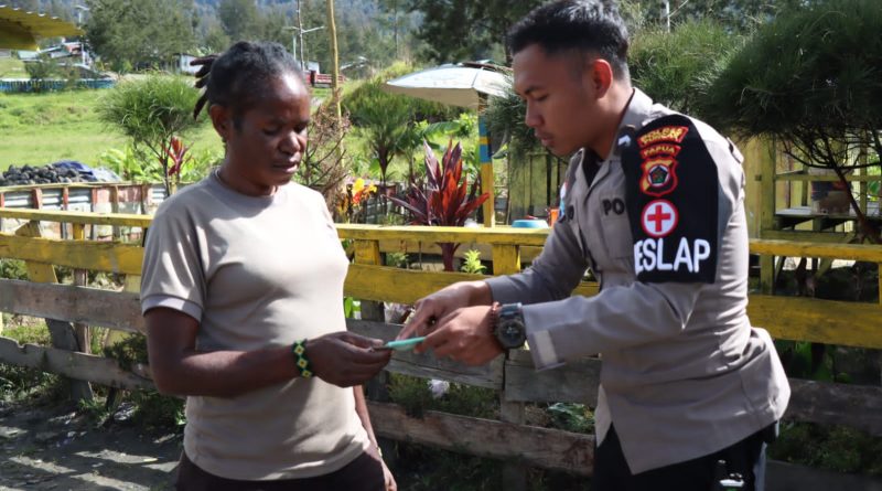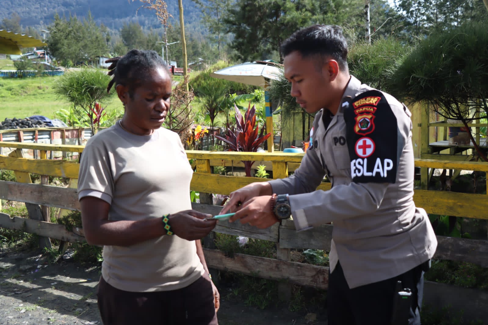 Papua – Personil Satgas Binmas Ops Rasaka Cartenz di Kabupaten Puncak tak henti hentinya terus memberikan pelayanan kesehatan secara gratis kepada masyarakat yang memerlukan pertolongan kesehatan.