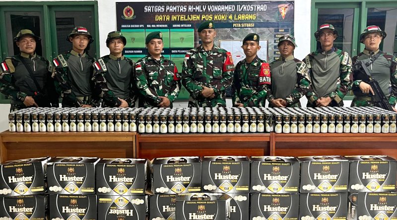 Satgas Yonarmed 11 Kostrad Gagalkan Penyelundupan Ratusan Kaleng Miras di Perbatasan