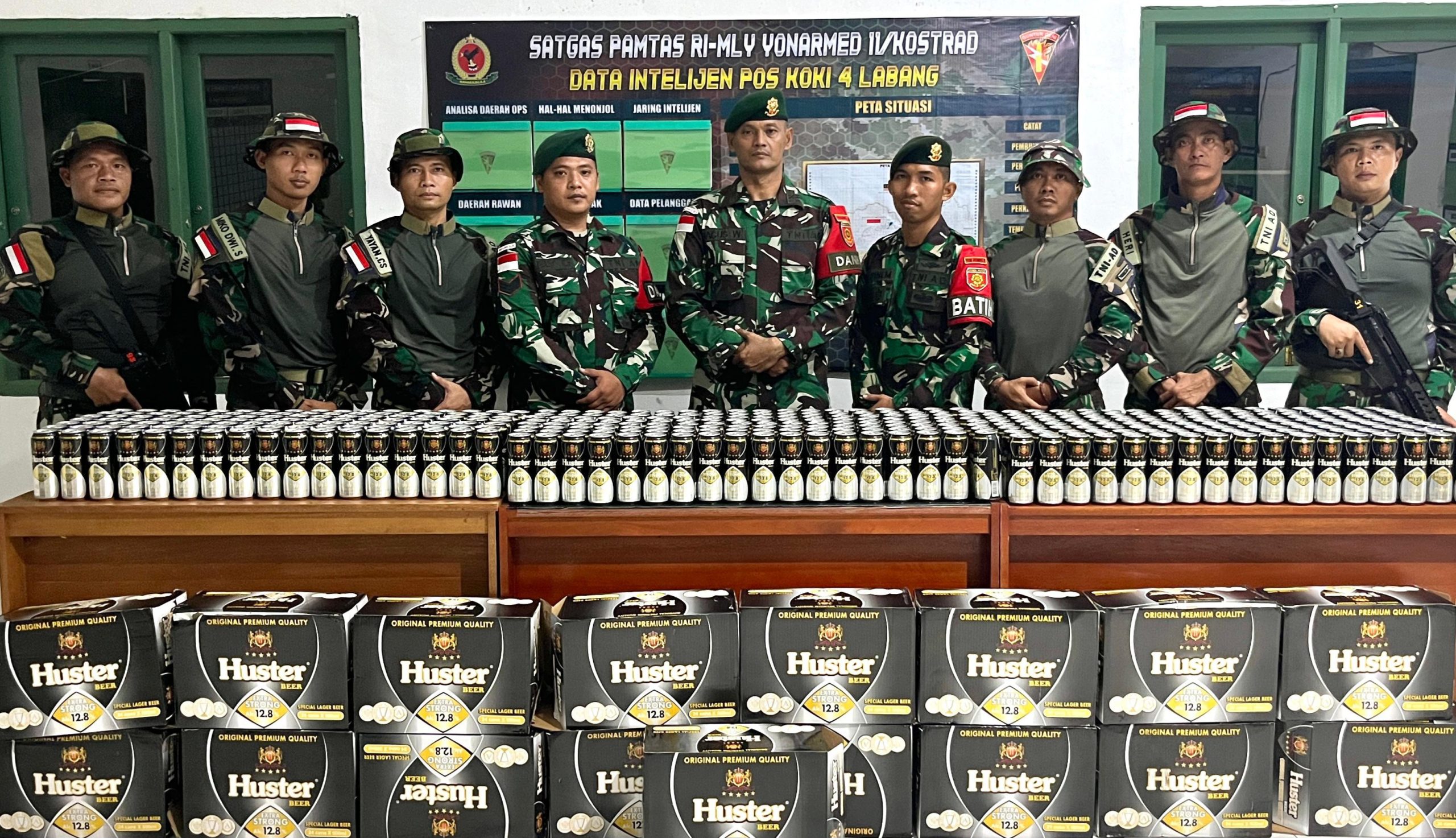 Satgas Yonarmed 11 Kostrad Gagalkan Penyelundupan Ratusan Kaleng Miras di Perbatasan