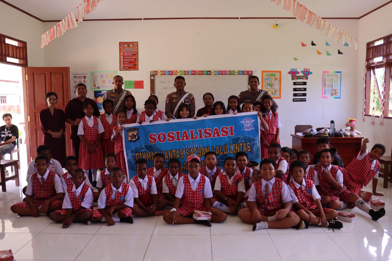 Satuan Lalu Lintas Polres Sarmi berikan sosialisasi Dikmas Lantas kepada pelajar SD