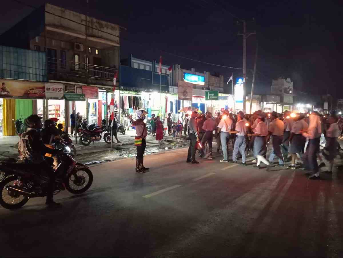 Kapolres Sarmi Kompol Suparmin, S.IP., M.H., melalui Kasat Lantas IPDA Ranto Sihombing, S.H menyampaikan bahwa untuk kelancaran kegiatan, kami dari Satuan Lalu Lintas Polres Sarmi telah memploting setiap anggota Lantas untuk menempati pesimpangan di jalur yang menjadi rute dari kegiatan pawai obor.