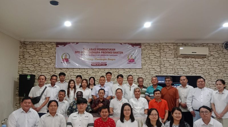 Tangerang Raya|wartaindonesiaterkini.com – GEMA SADHANA (Gerakan Masyarakat Sanathana Dharma Nusantara), sayap Partai Gerindra yang menjadi wadah perjuangan umat Buddha, Hindu, Konghucu, dan penganut kepercayaan terhadap Tuhan Yang Maha Esa, resmi mendeklarasikan pembentukan Dewan Pimpinan Daerah (DPD) Provinsi Banten serta Dewan Pimpinan Cabang (DPC) Kota dan Kabupaten Tangerang pada Rabu (23/7/2025).