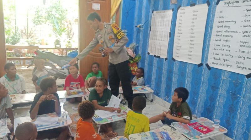 Kapolres Jayapura AKBP Fredrickus Maclarimboen, S.I.K., M.H., melalui Kapolsek Kawasan Bandara Sentani Iptu Wajedi, S.H., M.Si., menyampaikan bahwa Bhabinkamtibmas terus konsisten mengajarkan anak-anak peserta didik.