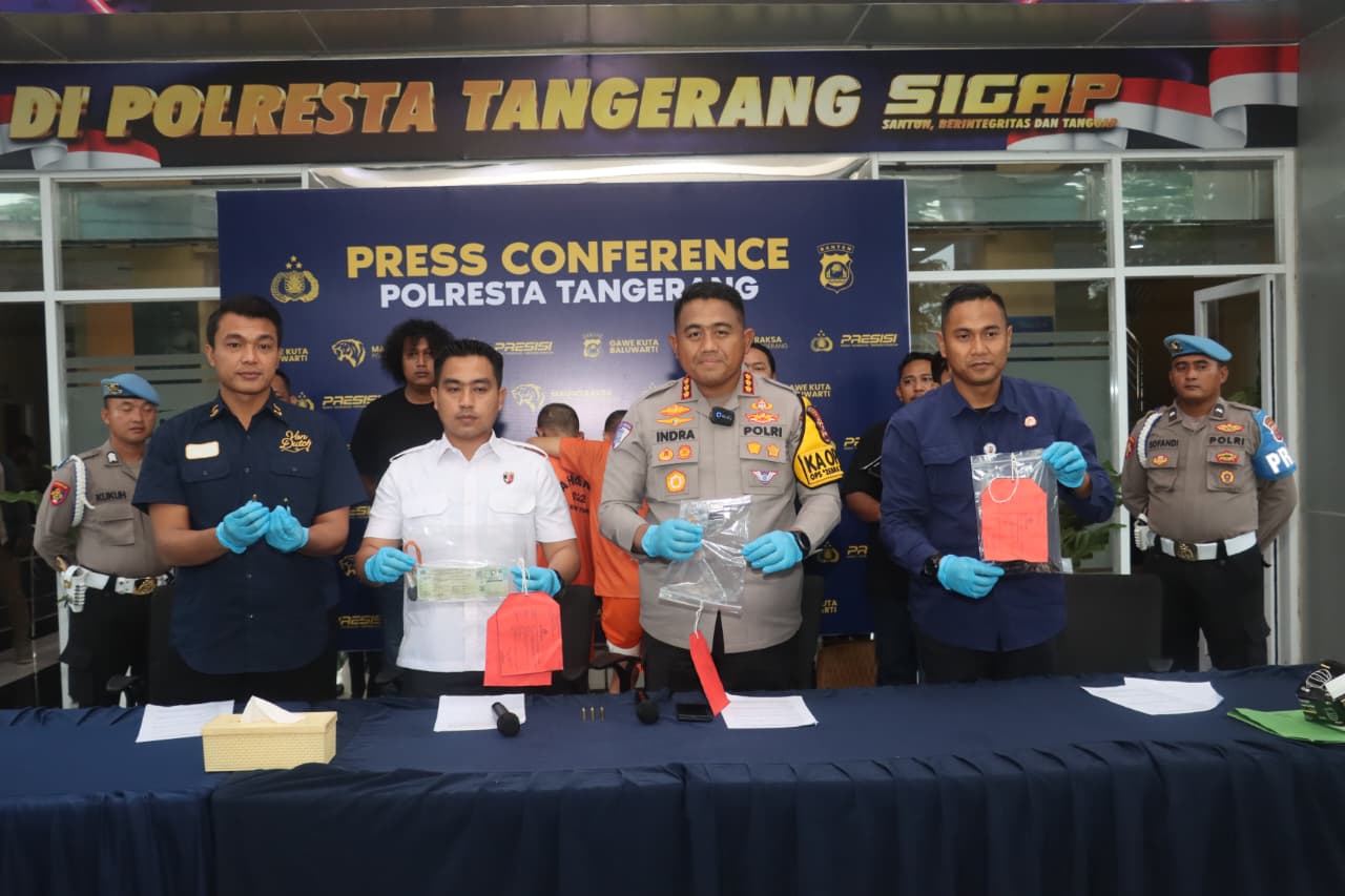 “Dari tangan kedua tersangka, kami amankan satu pucuk senjata api dan enam unit motor diduga hasil kejahatan,” kata Kapolresta Tangerang Kombes Pol Andi Muhammad Indra Waspada Amirullah, Selasa (18/11/2025) dalam sesi keterlibatan pers.