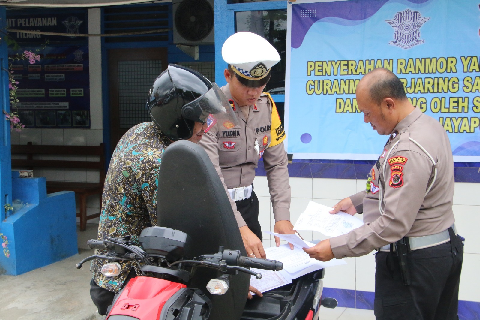 Papua – Satuan Lalu Lintas Polres Jayapura telah berhasil mengembalikan satu unit sepeda motor Yamaha X Ride warna hitam merah dengan nomor polisi PA 3383 RW kepada pemiliknya, (16/07) 2024