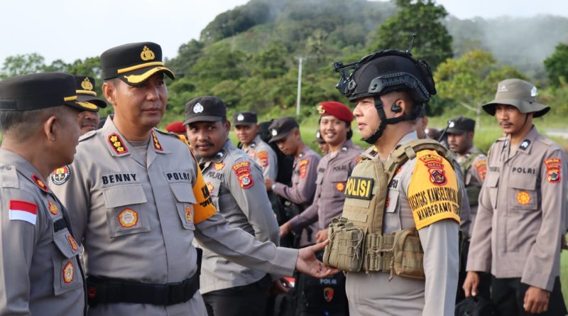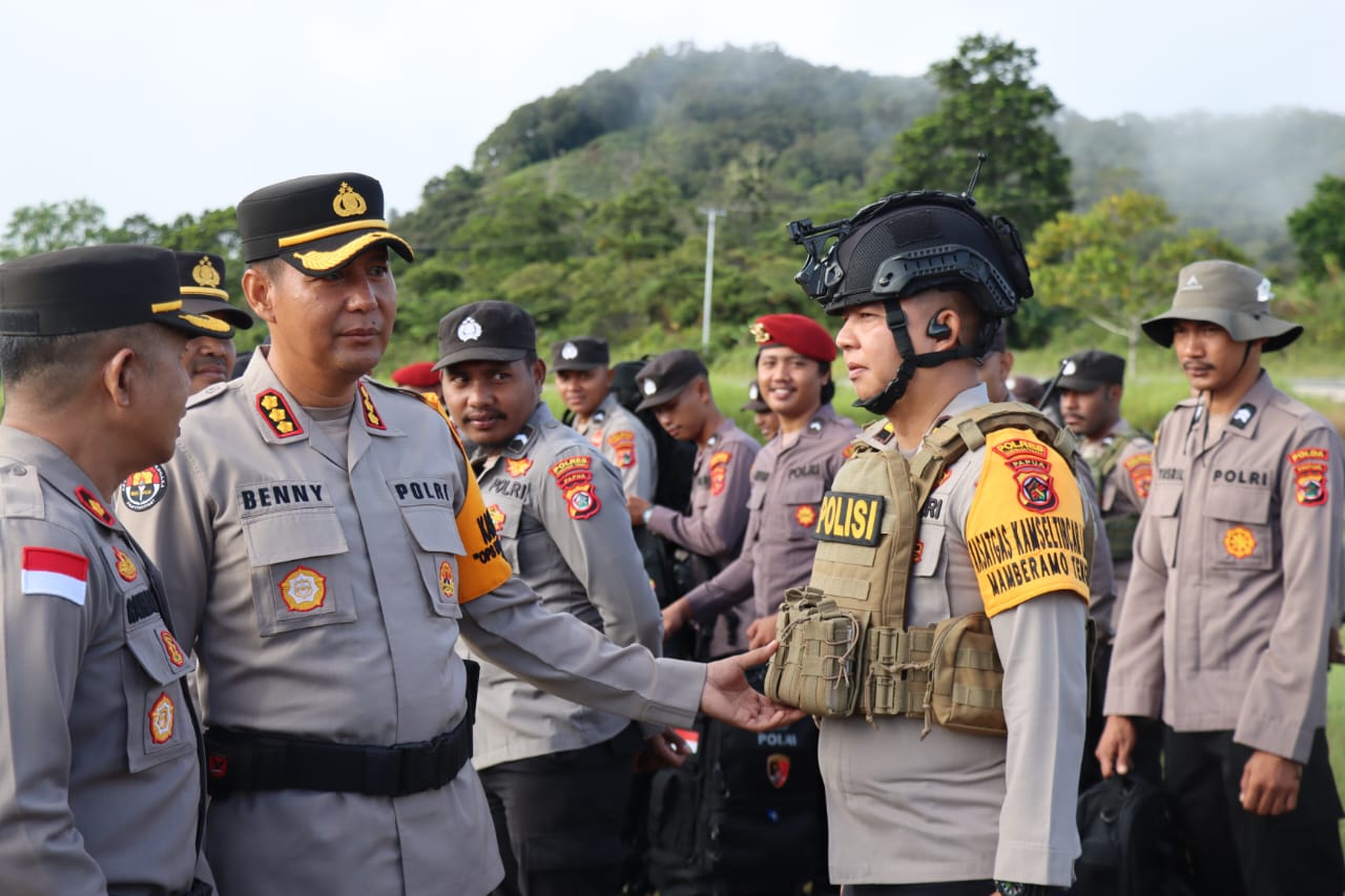 Papua – Dalam upaya untuk memastikan kelancaran dan keamanan Pemilihan Umum (Pemilu) 2024, Pamatwil Kabupaten Mamberamo Tengah juga selaku Kabid Humas Polda Papua Kombes Pol. Ignatius Benny Ady Prabowo, S.H., S.I.K., M.Kom didampingi Kapolres Mamberamo Tengah, Kompol Rahman.S.Sos,.M.Si. secara resmi melepas pergeseran personel ke Tempat Pemungutan Suara (TPS) di wilayah masing-masing.