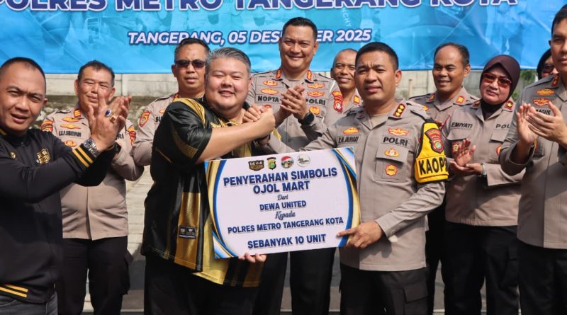 Tangerang |WIT- Polres Metro Tangerang Kota menerima secara resmi bantuan 10 unit Ojol Mart dari manajemen Dewa United. Serah terima berlangsung pada Jumat, 5 Desember 2025, bertempat di depan Gedung Parkir Polres Metro Tangerang Kota. Kegiatan dihadiri sejumlah pejabat utama Polres serta jajaran pimpinan Dewa United dan PT. Lima Sekawan Indonesia.
