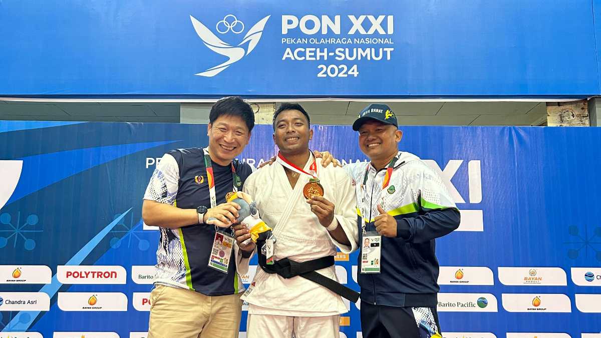 Kadek menyumbang emas di kelas 90 kg putra setelah di final mengalahkan pejudo asal Bali, I Made Sastra Dharma di GOR Universitas Syiah Kuala, Banda Aceh, Aceh, Rabu (11/9/2024).