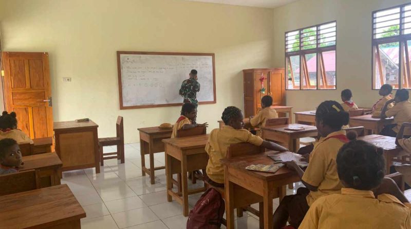 Tingkatkan Budaya Literasi, Satgas Yonif 512/QY Bantu Mengajar di SD Inpres Towe Hitam