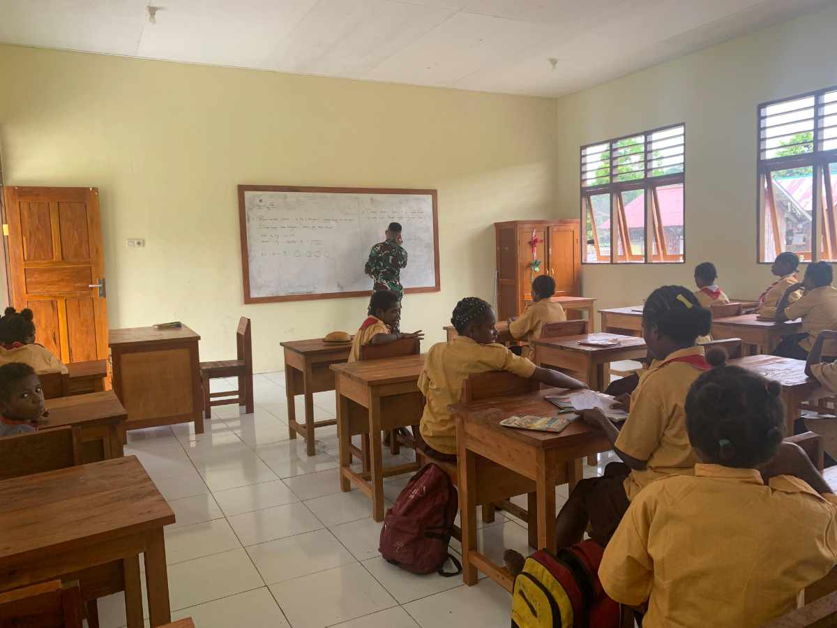 Papua – Dalam upaya meningkatkan budaya literasi dan mempersiapkan generasi yang lebih berkualitas, Satgas Yonif 512/QY turut serta membantu proses belajar mengajar di SD Inpres Towe Hitam. Kegiatan ini dipimpin oleh Danpos Satgas Yonif 512/QY yang salahsatu Posnya berada di Distrik Towe Hitam, Kabupaten Keerom, Provinsi Papua, Letda Inf Supriadi Paputungan. Minggu, (6/10/2024).