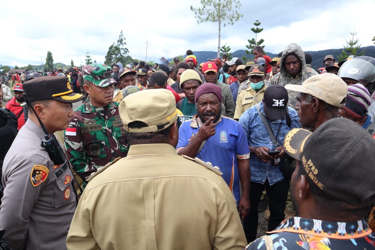 Wakil Bupati Kabupaten Pegunungan Bintang Kris Bakweng Uropmabin, ST mewakili Pemerintah Daerah bersama TNI-Polri dan Forkompimda memfasilitasi masyarakat dari beberapa Kampung yang mengungsi agar kembali kerumah sekaligus memberikan bantuan bahan makanan.
