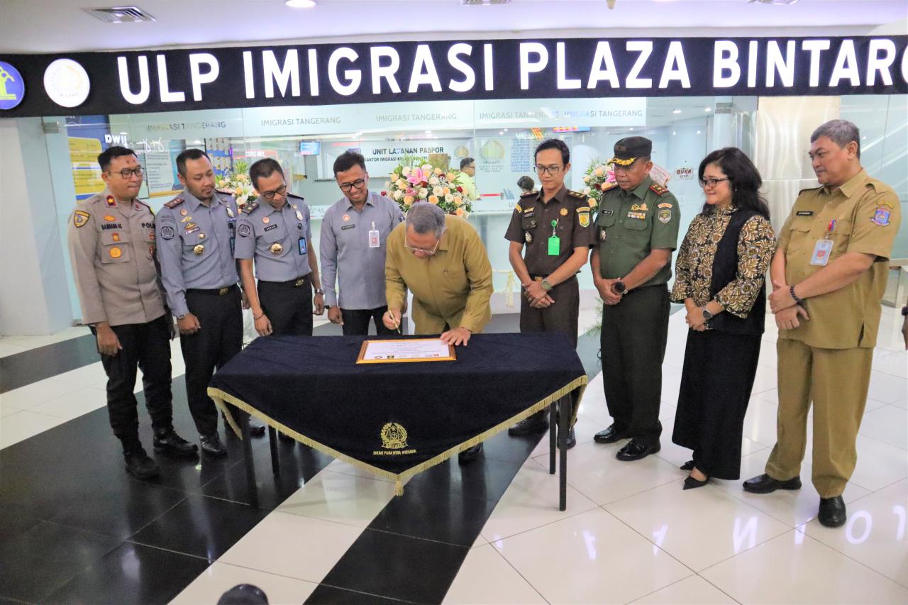 Peresemian ditandai dengan penandatanganan Perjanjian Kerja sama (PKS) yang dilakukan oleh Kepala Kantor Imigrasi kelas I Non-TPI Tangerang, RakhaSukma Purnama bersama Tina Santosa Hadisumarto, Direksi Plaza Bintaro yang dilanjutkan dengan Pengguntingan pita oleh Walikota Tangerang Selatan, Sesditjen Imigrasi dan Direksi Plaza Bintaro.