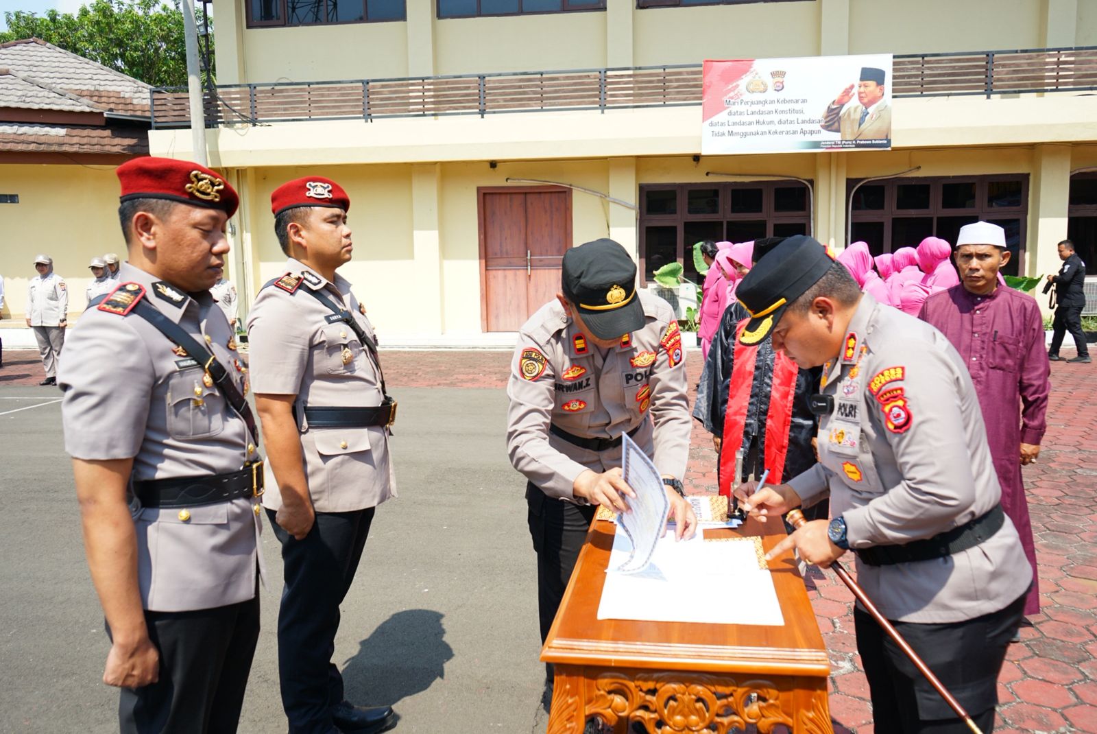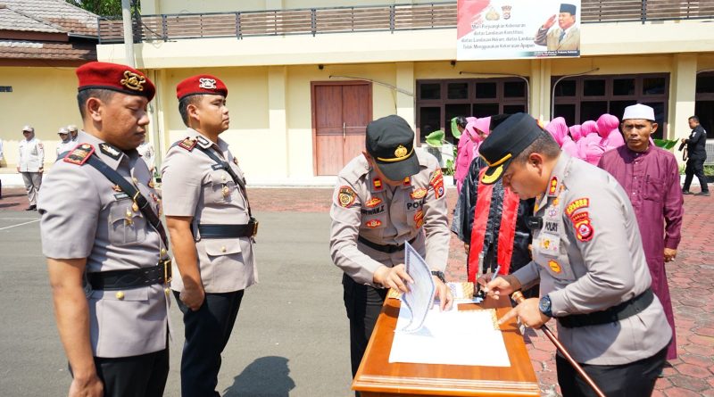 Rangkaian acara diawali dengan pengambilan sumpah jabatan, dilanjutkan penandatanganan fakta integritas, yang disaksikan langsung oleh PJU dan para perwira Polres Cilegon.