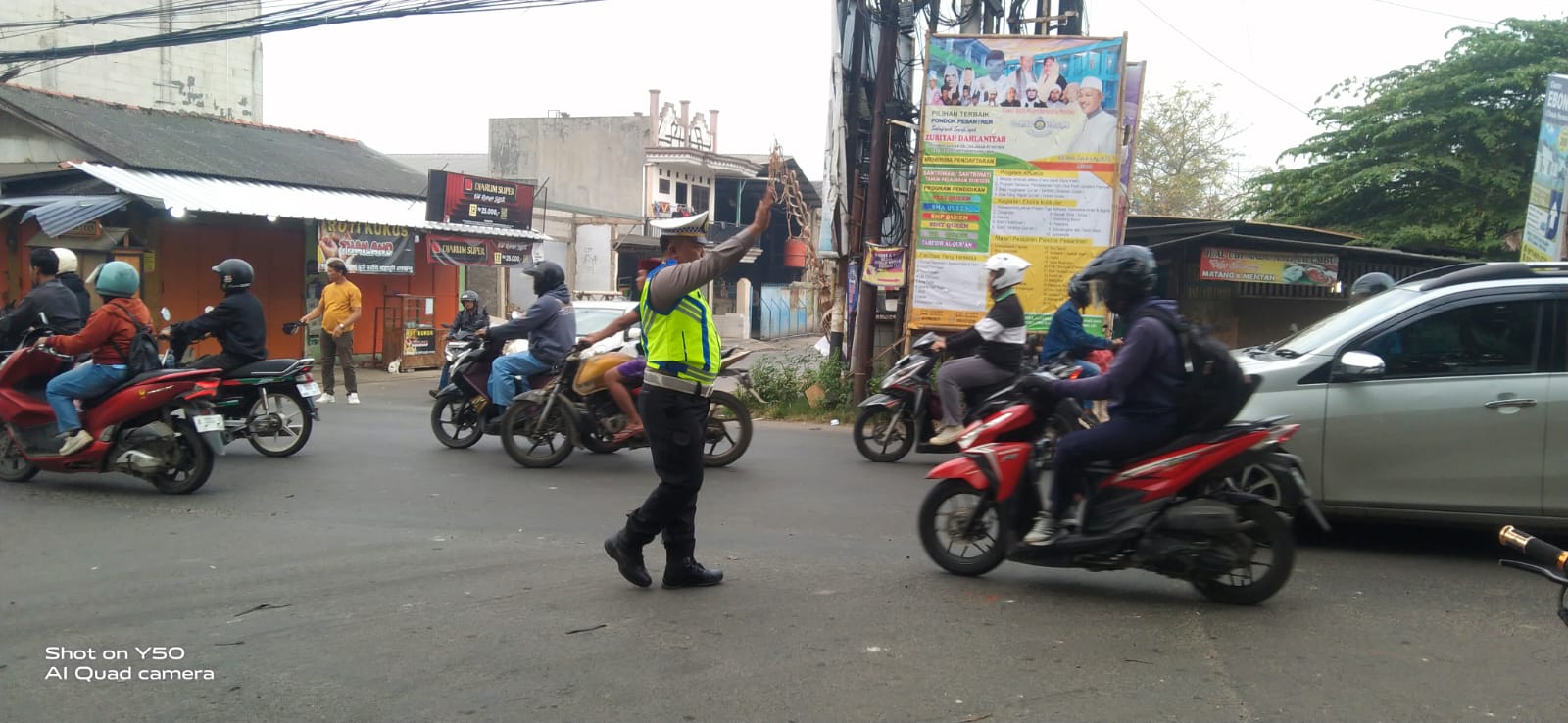 Urai Kemacetan di Perempatan Picung Polsek Pasar Kemis Gatur Lalin Pagi Hari