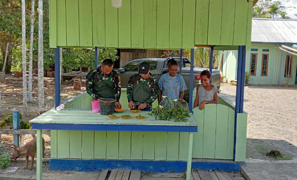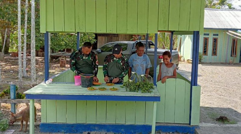 Wadansatgas Yonif 512/QY Turun Langsung Bantu Masyarakat Senggi Panen Pinang