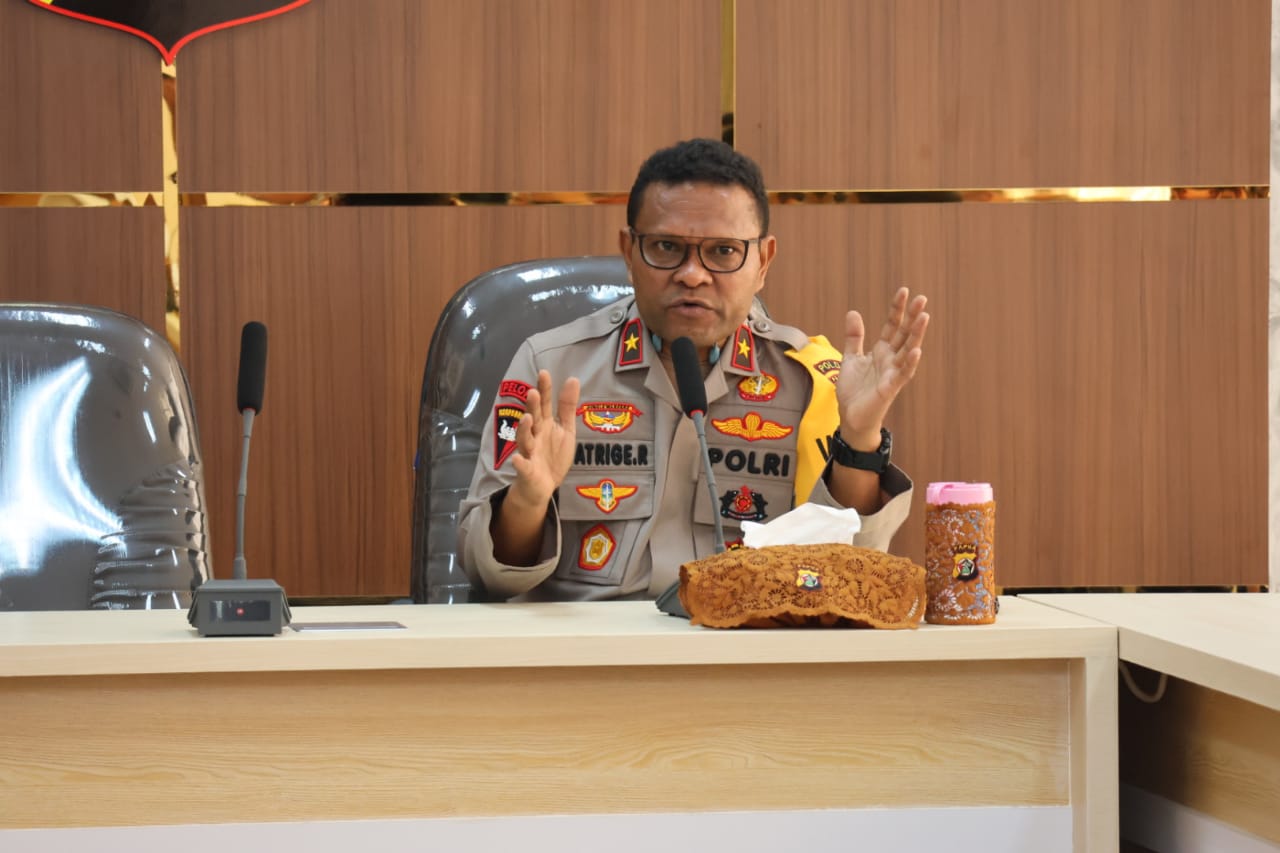 Papua – Wakapolda Papua, Brigjen Pol. Petrus Patrige Rudolf Renwarin, S.H., M.Si, memimpin Rapat Anev Perkembangan Situasi di Aula Vicon Mapolda Papua Baru, Koya Koso, pada Kamis (14/03).