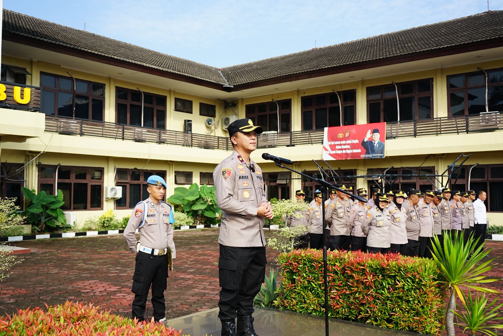 “Responsif, peduli, dan siap siaga harus menjadi bagian dari kultur kerja kita semua. Jalankan tugas dengan penuh tanggung jawab serta jaga kekompakan di lapangan,” tegas Wakapolres.