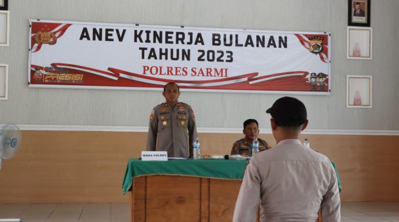Wakapolres sarmi dalam kegiatan Anev bulanan dalam arahannya menyampaikan kepada para kabag , kasat dan kapolsek jajaran agar memberikan gambaran tentang pelaksaan tugas baik administrasi maupun operasiaonal serta hambatan dan kendala yang yang hadapi dalam pelaksanaan tugas . ” Ujar Kompol Roberth Hitipeuw,SH.,MH .