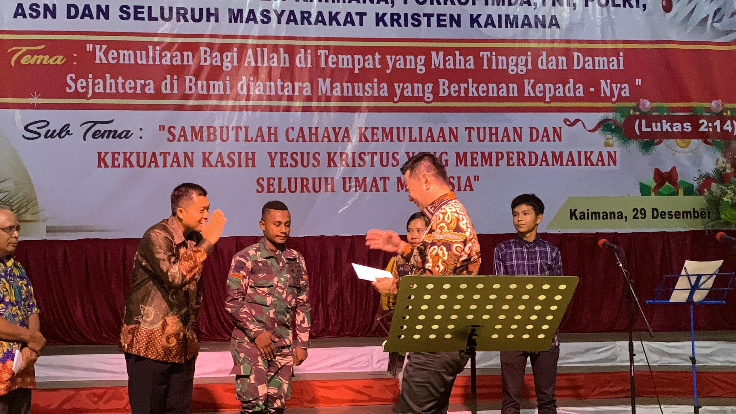 hadiah di berikan langsung oleh Bupati Kaimana Freddy Thei kepada Danyonif 764/IB Letkol Inf Ucok Namara yang di wakili Wadanyonif 764/IB Kapten Inf Luki Popor. Kegiatan dilakukan Gedung pertemuan Krooy Kabupaten Kaimana, Jum’at (29/12/2023).